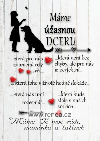Dřevěná buková destička - obrázek s natištěným textem o rozměrech 13x18 cm pro vaši milovanou dceru. Vzadu háček na pověšení nebo ji můžete jen tak opřít na poličku nebo pracovní stůl.