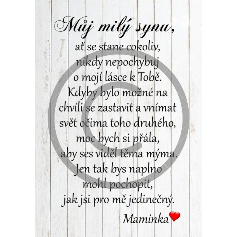 Máte syna, který je pro vás vše? Udělejte mu radost hezkým dárkem. Dřevěnou destičku si může pověsit nebo jen tak opřít na poličku nebo pracovní stůl.