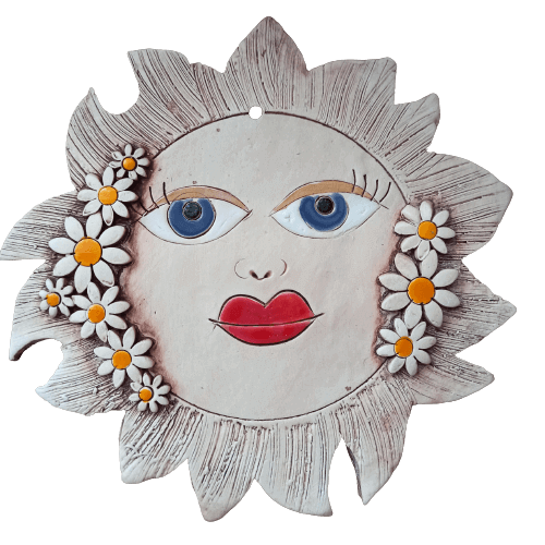 Roztomilé keramické sluníčko s kytičkami k zavěšení, dárek pro všechny milovníky keramiky. Rozjasní vaši domácnost, i když bude venku zataženo.